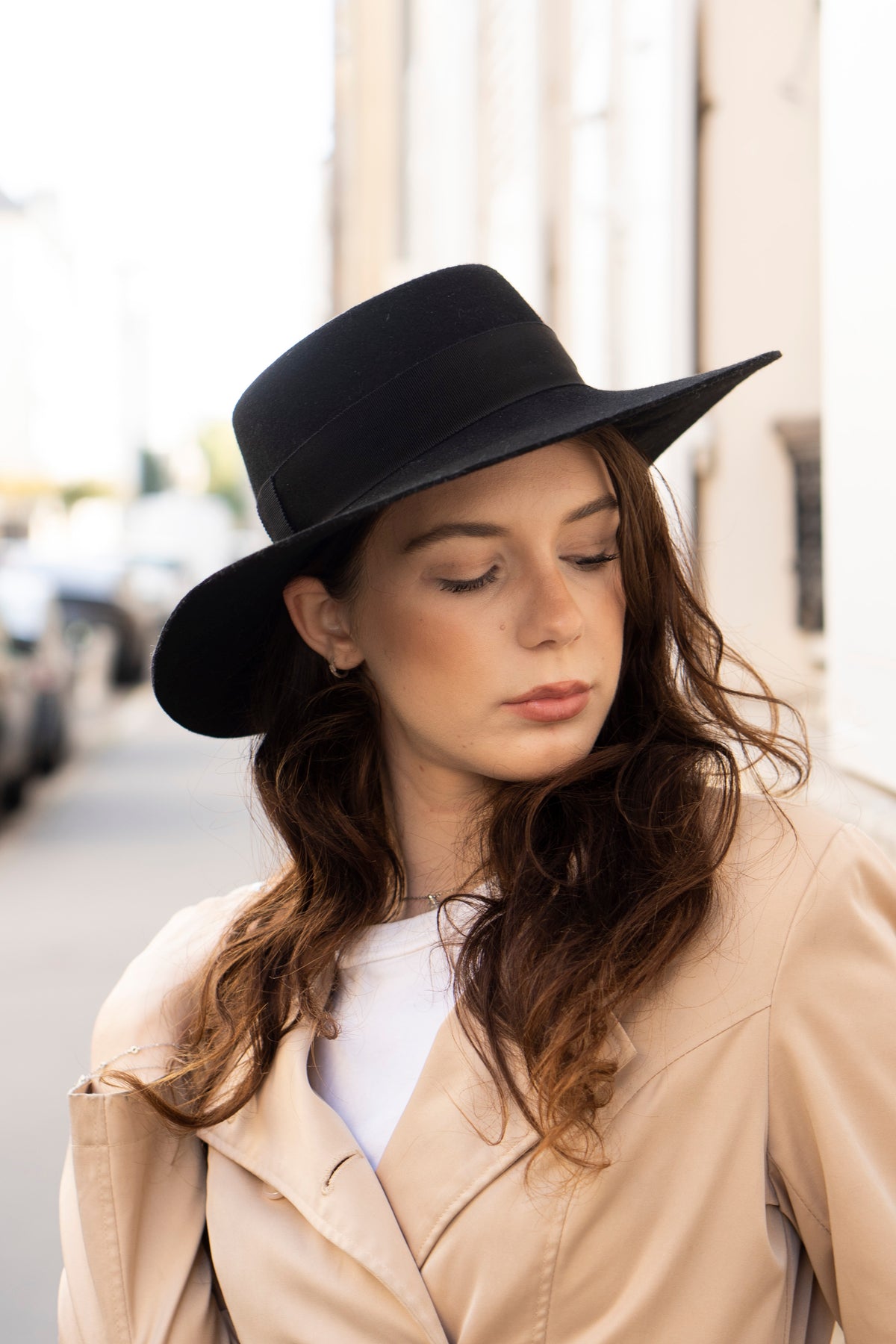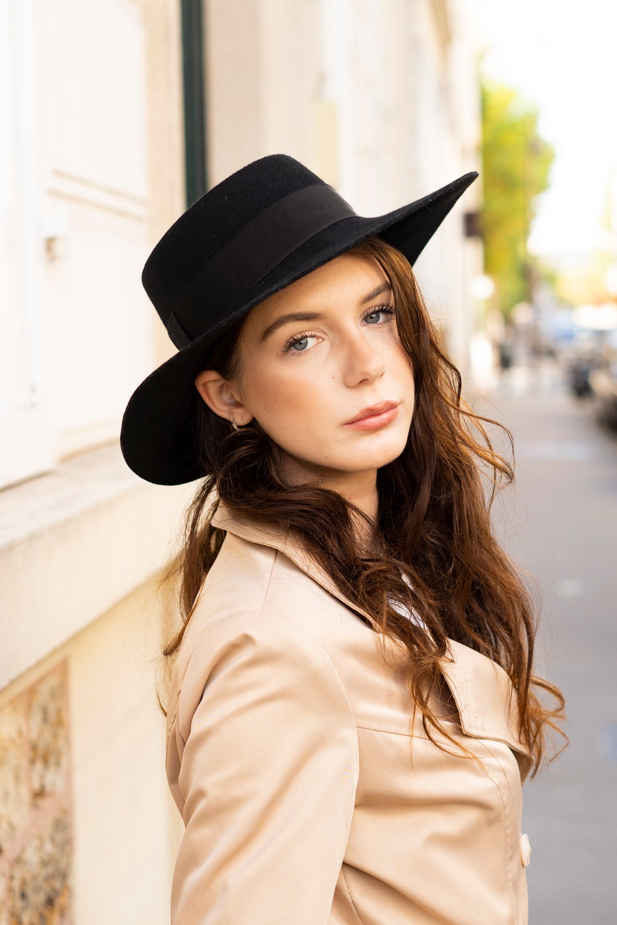 Le Fedora Prune allie chic et modernité dans une interprétation élégante du classique fedora. Confectionné à la main en France dans un feutre de laine de qualité, il se distingue par son large bord et sa garniture ton sur ton, qui lui confèrent une allure contemporaine et sophistiquée.
