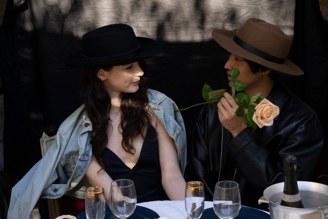 À partir d’un échange en showroom, nous définissons la forme (capeline, fedora, trilby, canotier), la hauteur de couronne, l’ampleur de bord, la matière et les finitions. Prise de mesures, prototypage si besoin, choix du ruban et des détails, puis réalisation dans les règles de l’art. Délais clairs et ajustement final pour un port parfaitement confortable.