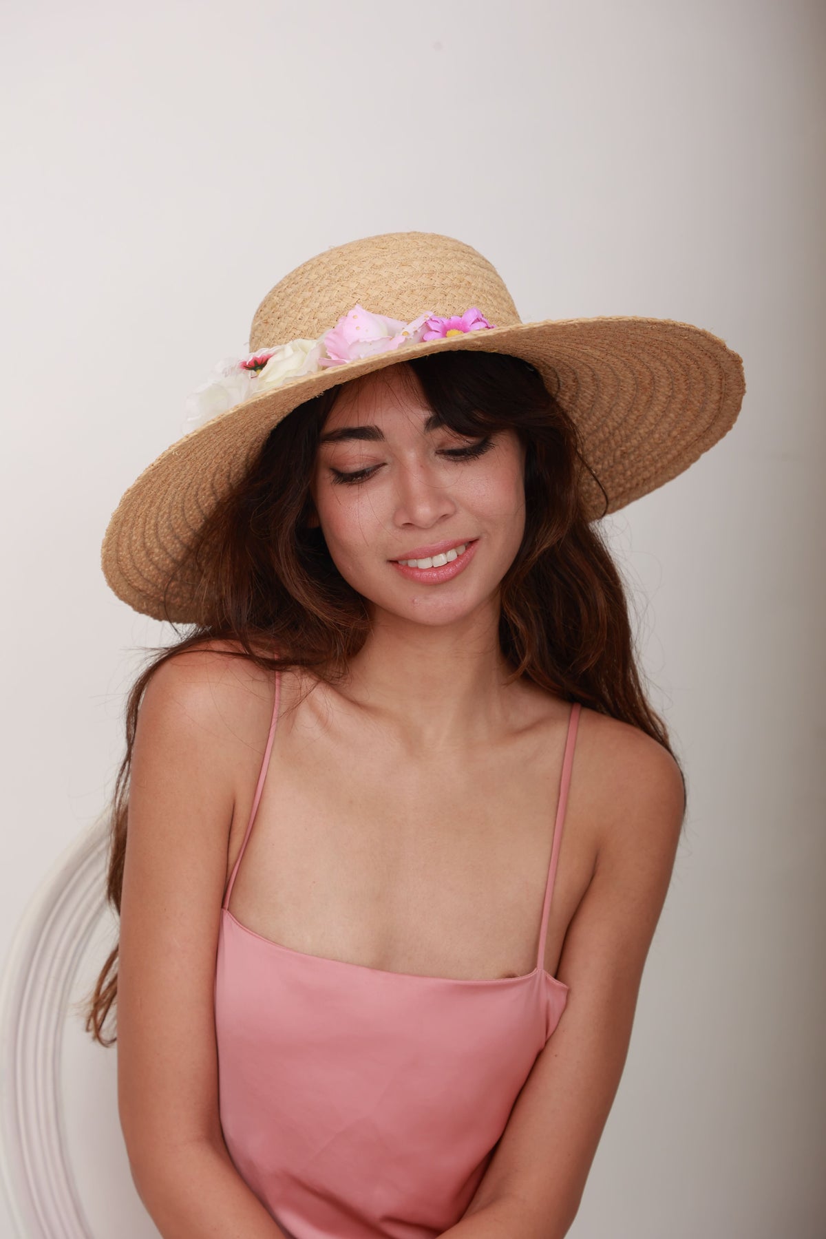 Capeline souple en raphia naturel ornée de fleurs
