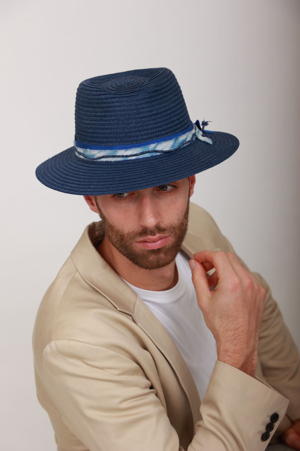 Description : Confectionné en paille cousue et renforcé par un fil de nylon, ce chapeau confortable et léger protège du soleil tout en apportant une touche de bleu à vos tenues. Un modèle unisexe, parfait pour tous les tours de tête.
